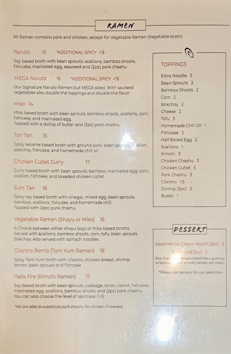 - Signature Ramen - A variety of ramen options, including the acclaimed spicy Naruto ramen, known for its fresh, clear broth.